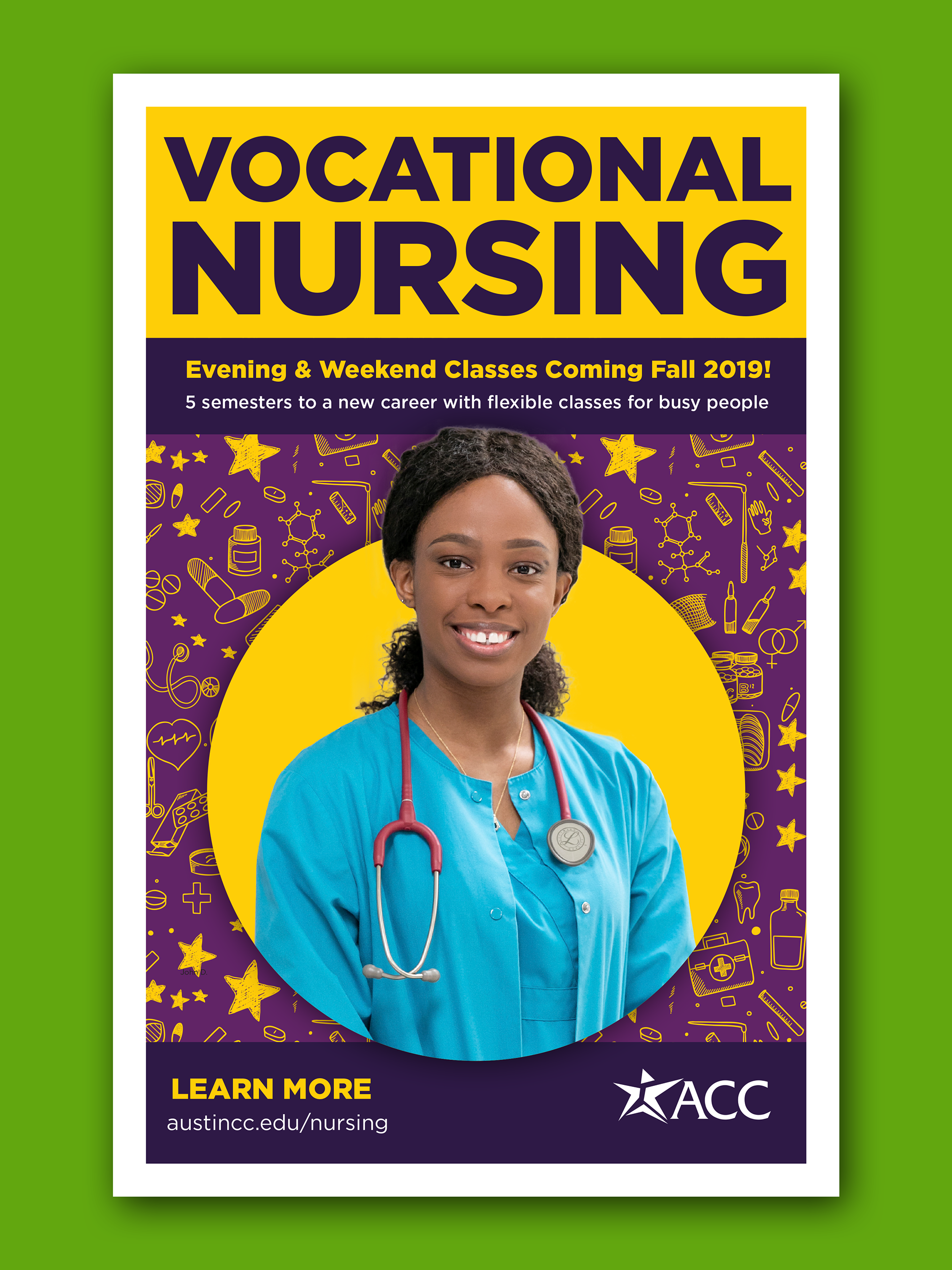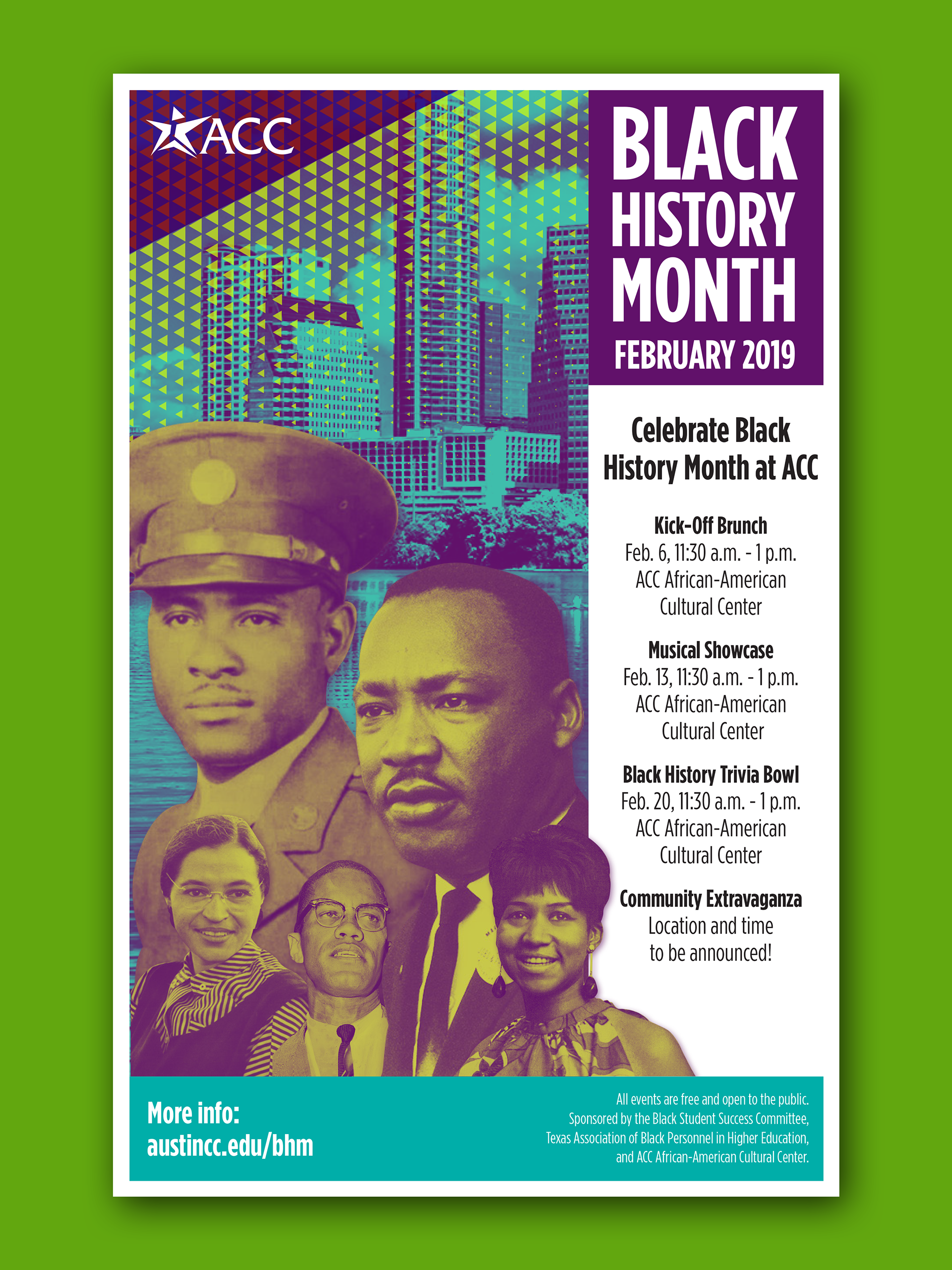I developed a flexible series of promotional posters and campaign materials for diverse Austin Community College initiatives.