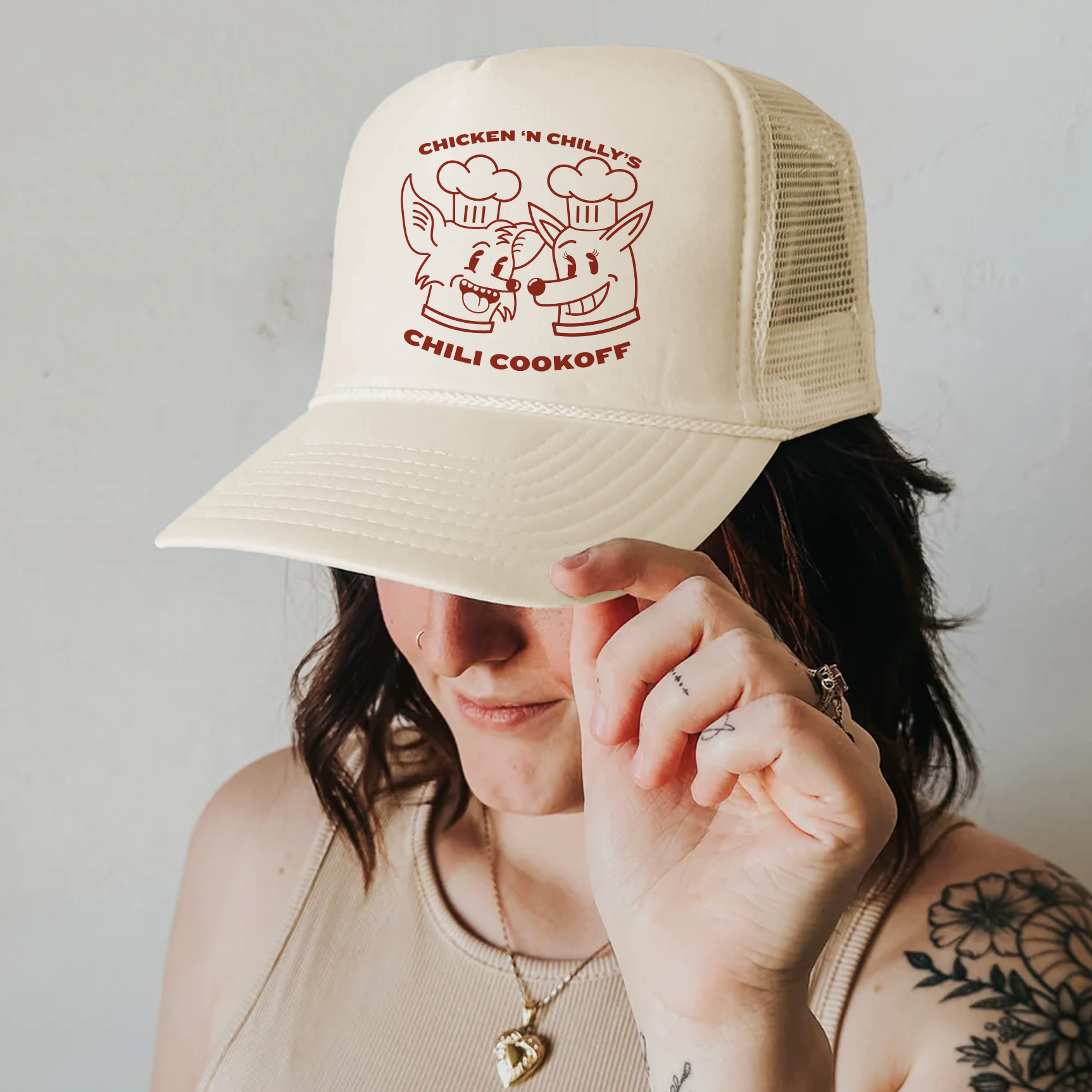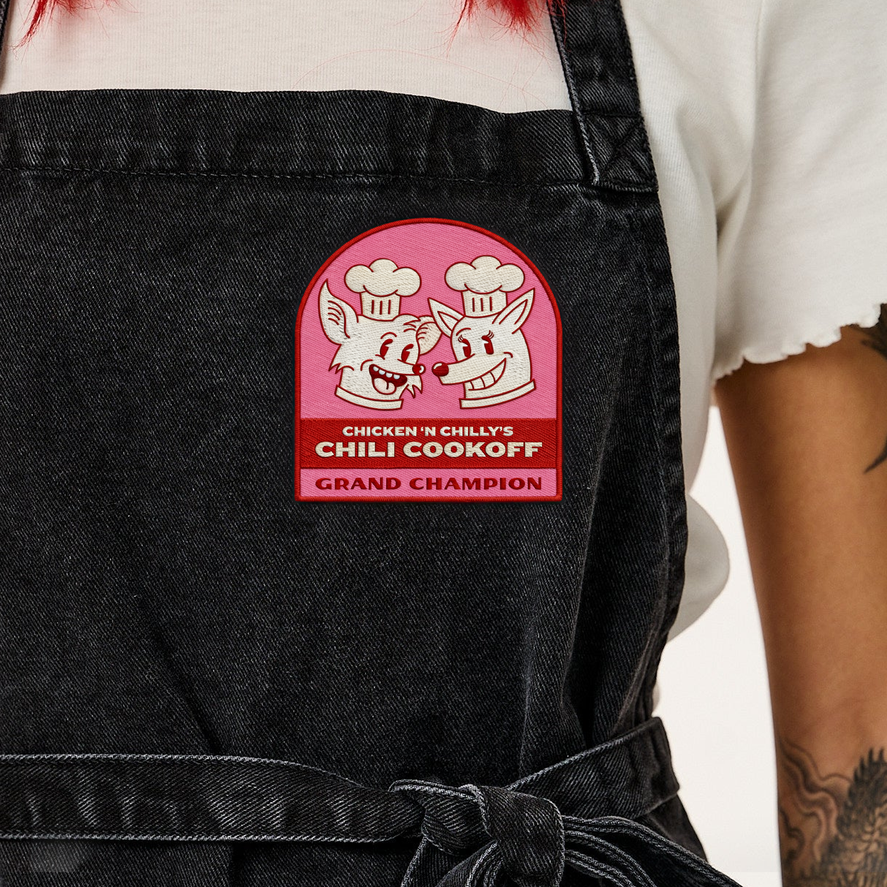 I created the branding for the wine bar’s second annual chili competition and charity fundraiser. The project focused on custom character design used for digital promotion and physical merchandise, including screen-printed trucker hats and specialty "Grand Champion" embroidered patches for the winners' custom aprons.